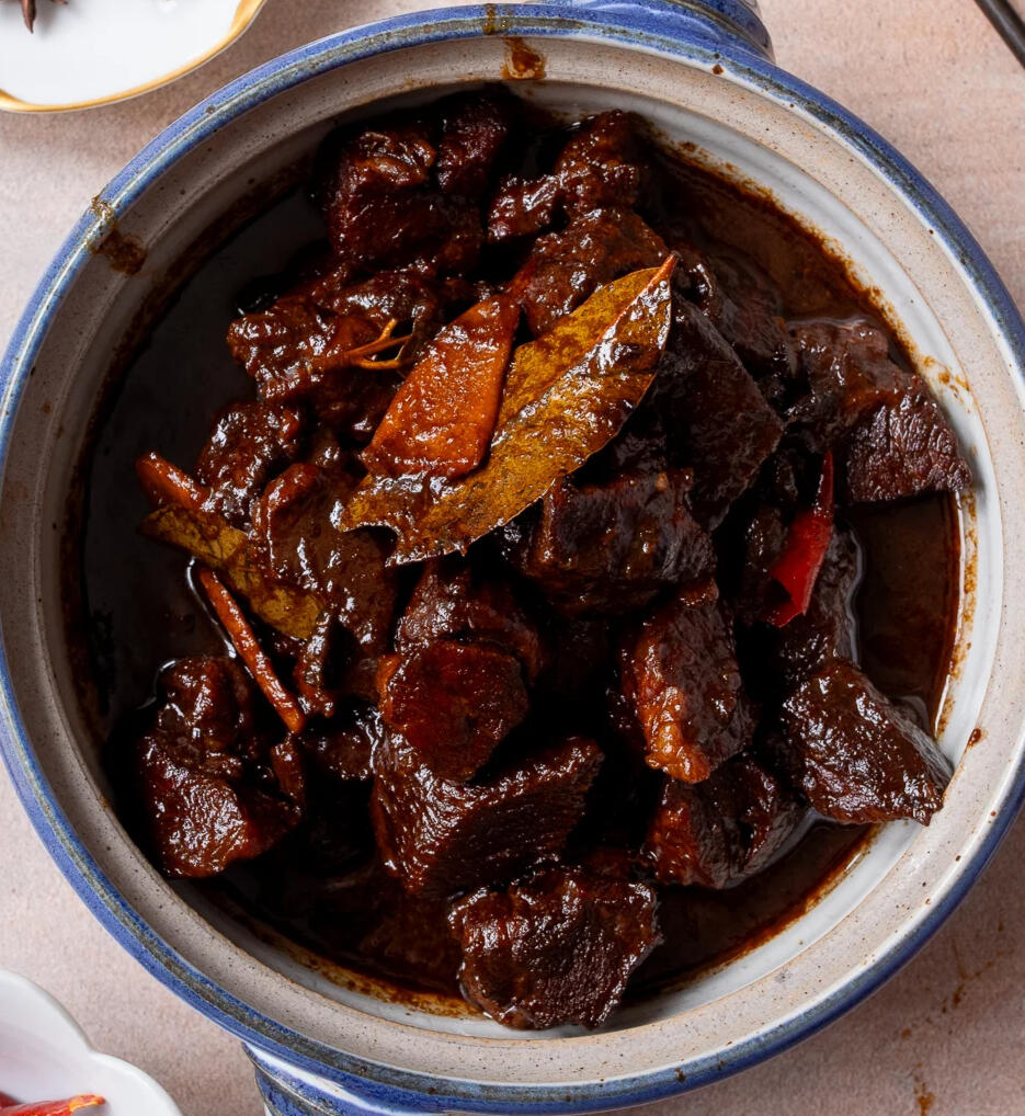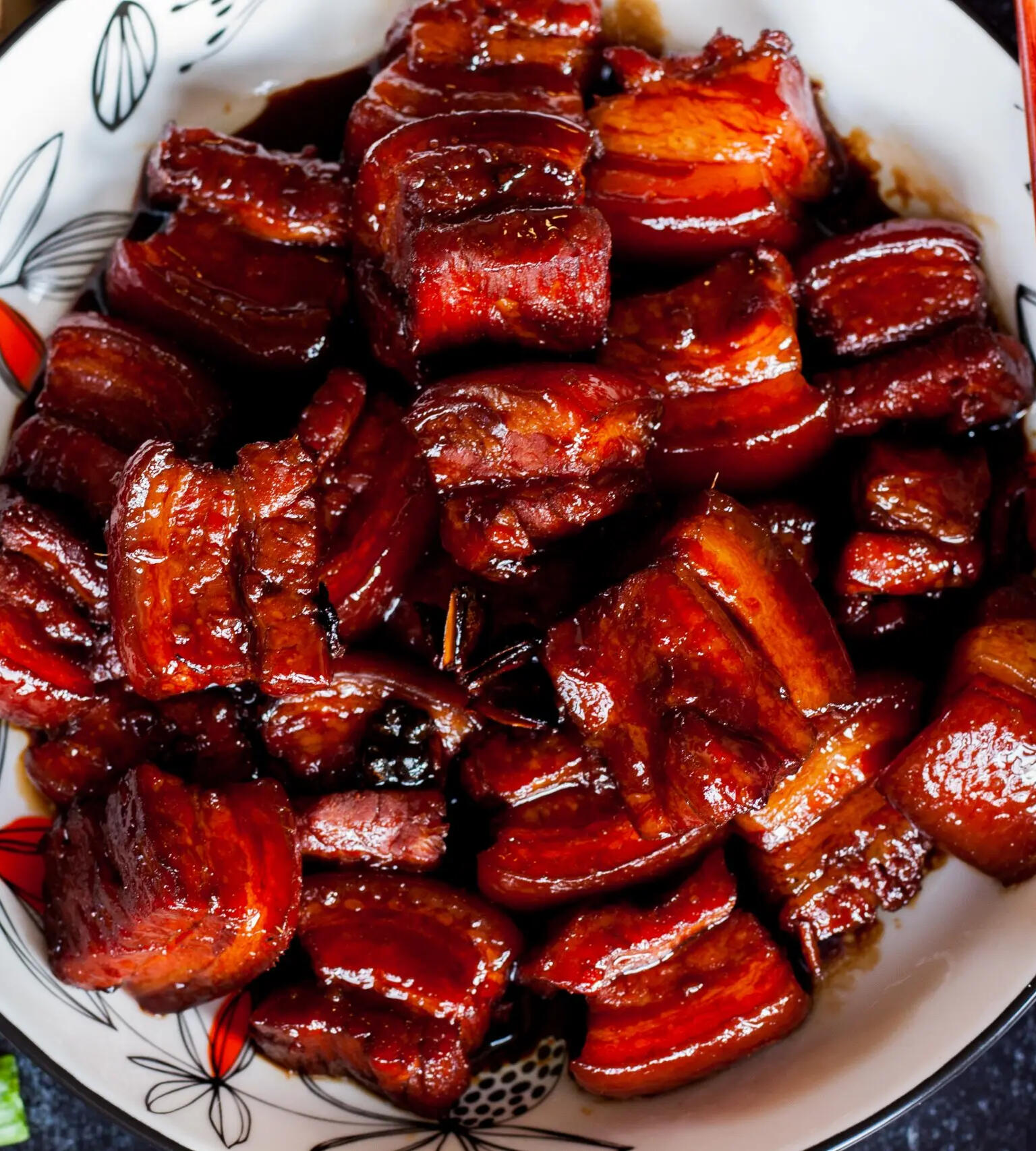 Succulent chunks of beef slowly simmered in a rich, caramel-tinged soy broth, infused with aromatics like ginger, star anise, and Shaoxing wine. The deep, glossy sauce clings lovingly to each morsel, giving a bold, savory intensity with tender meat that melts in your mouth.
