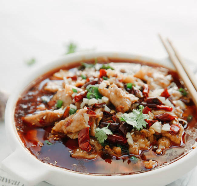 A signature dish of Yanxian cuisine, shredded pork with garlic sauce delivers a sophisticated and addictive taste: tangy, spicy, sweet, and sour. The soft crunch of sauteed carrots, bamboo shoots, and wood ear mushrooms enhances the dish. Ginger, spring onion, and Yanxian pickled chili stand out in this dish, bringing all the components together.