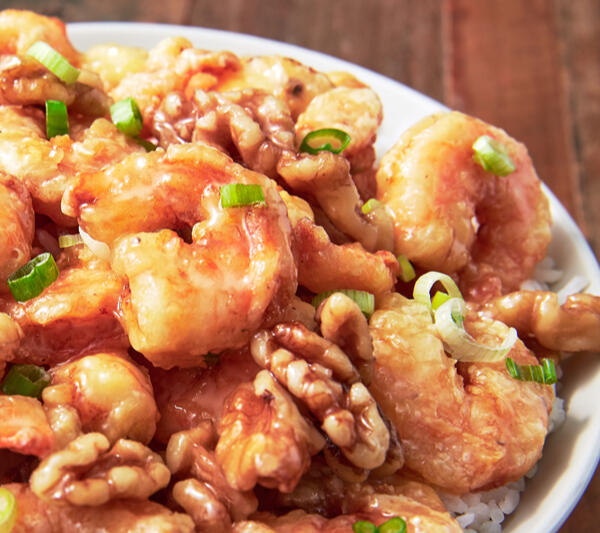 Plump, tender pieces of shrimp coated in a crunchy batter, coated in a sticky, honeyed sauce, and stir-fried with walnuts. This simple dish has a sweet and savory flavor that is sure to satisfy all your cravings. It is perfect with rice or noodles for double the crunch experience.