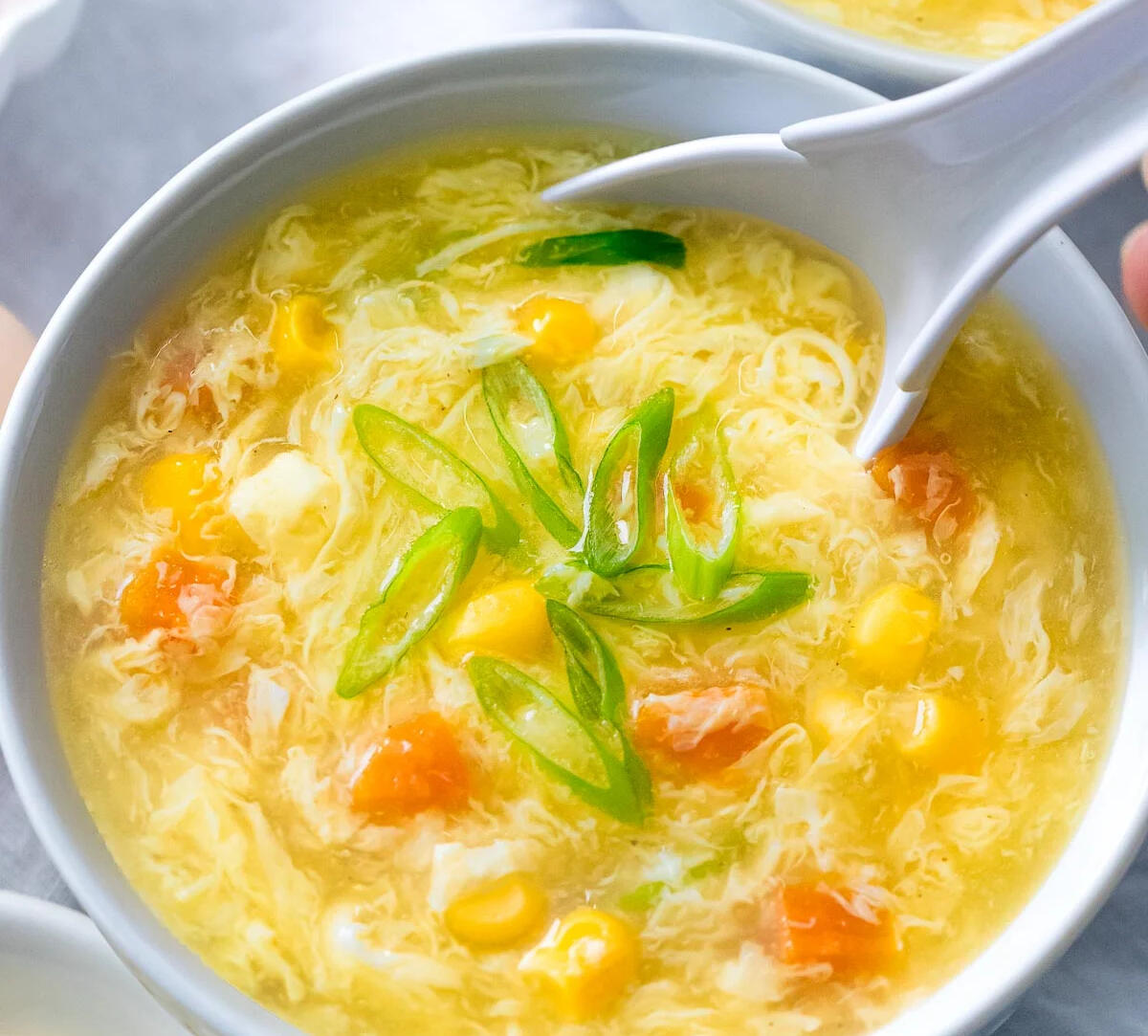 A staple in many Doman households is a simple and hearty soup. Chicken broth forms the base, which is then thickened with cornstarch. The soup is then seasoned with soy sauce, salt, pepper, and sesame oil, and it is enhanced with ginger, corn, carrots, and scallions. It is deliciously comforting.