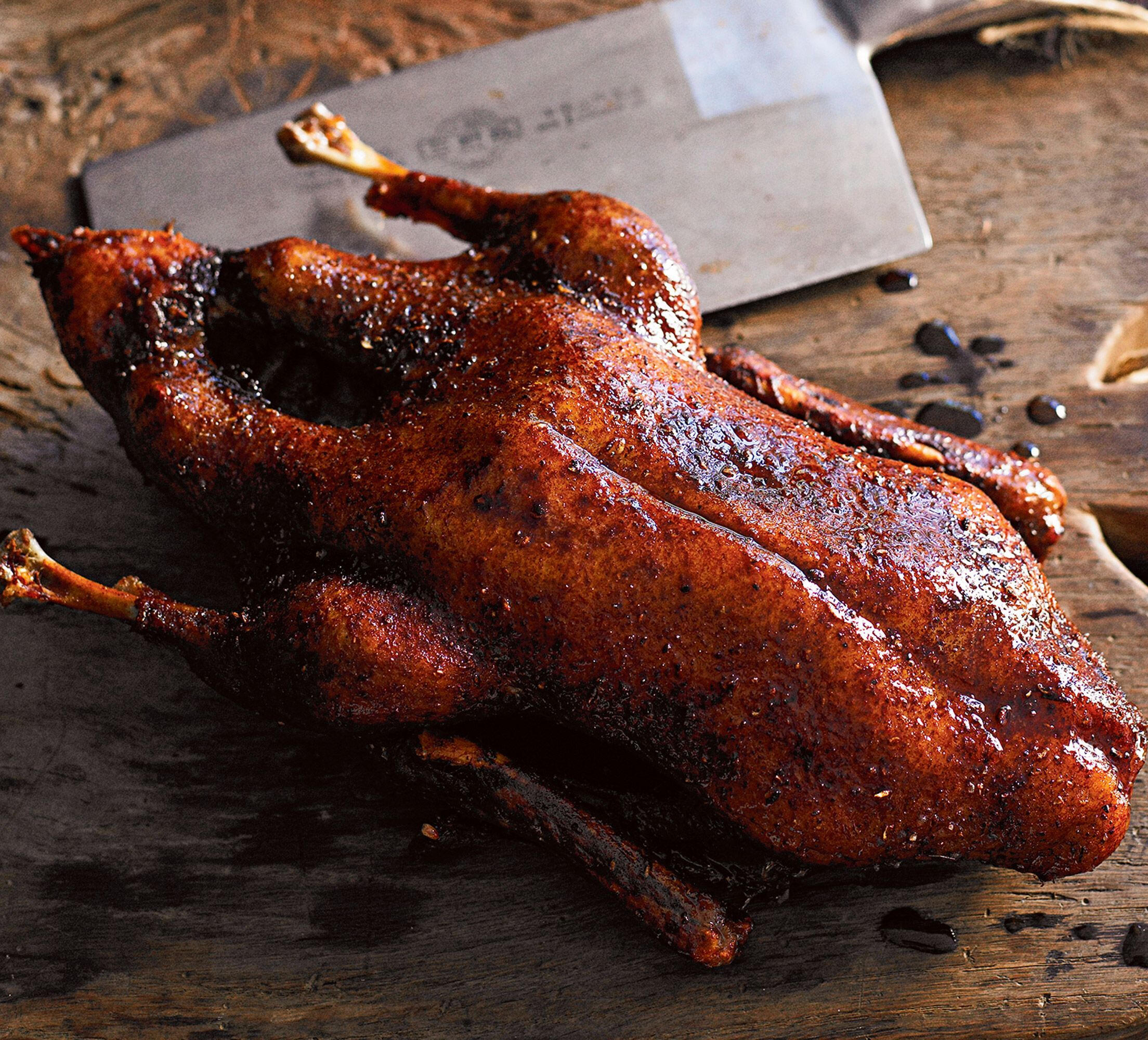 A whole dodo is marinated in Doman 5-spice powder (cinnamon, fennel seed, star anise, and cloves), Yanxian peppercorns, and other seasonings. It is carefully air-dried for several days and then deep-fried. It is extremely crispy! A lotus root and edamame stir-fry accompanies this dish, using a bit of the oil the dodo was fried in to unify the flavors.