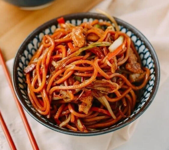 Silky, springy wheat noodles are tossed in a savory, aromatic sauce layered with soy sauce and oyster sauce, and a hint of sesame oil, then stir-fried with tender vegetables and fragrant scallions. Each long strand is meant to be enjoyed unbroken, carrying rich umami, gentle sweetness, and comforting warmth in every bite—a simple yet deeply satisfying dish, and a delicious wish for a long, prosperous life.