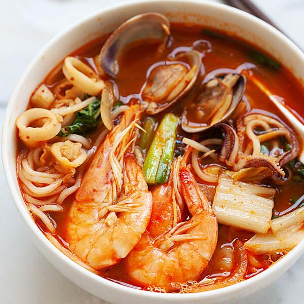 Deliciously prepared seafood and noodles in a spicy broth. Shrimp, clams, squid, and scallops paired with Bok choy and napa cabbage over a bed of fresh wheat noodles. The broth is thick enough to coat every component of this dish, thus enhancing the overall taste experience with the ever-present mouth-tingling spiciness.