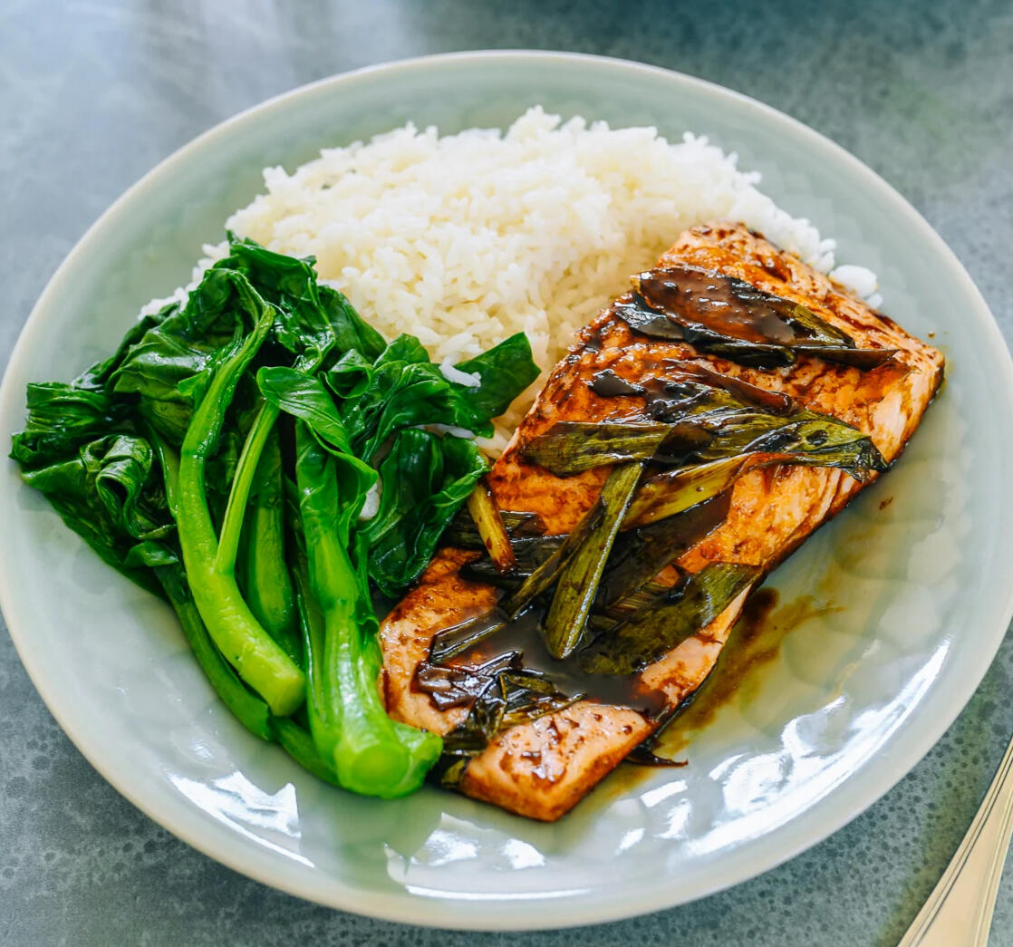 Rich, buttery salmon fillets are bathed in a glossy, sweet-savory red-cooked (hongshao) glaze, accented by tangy black vinegar, fragrant ginger and scallions, and a dark soy-sugar balance. The sauce clings to the fish in syrupy ribbons, delivering a perfect harmony of bold flavor and tender, melt-in-your-mouth texture.