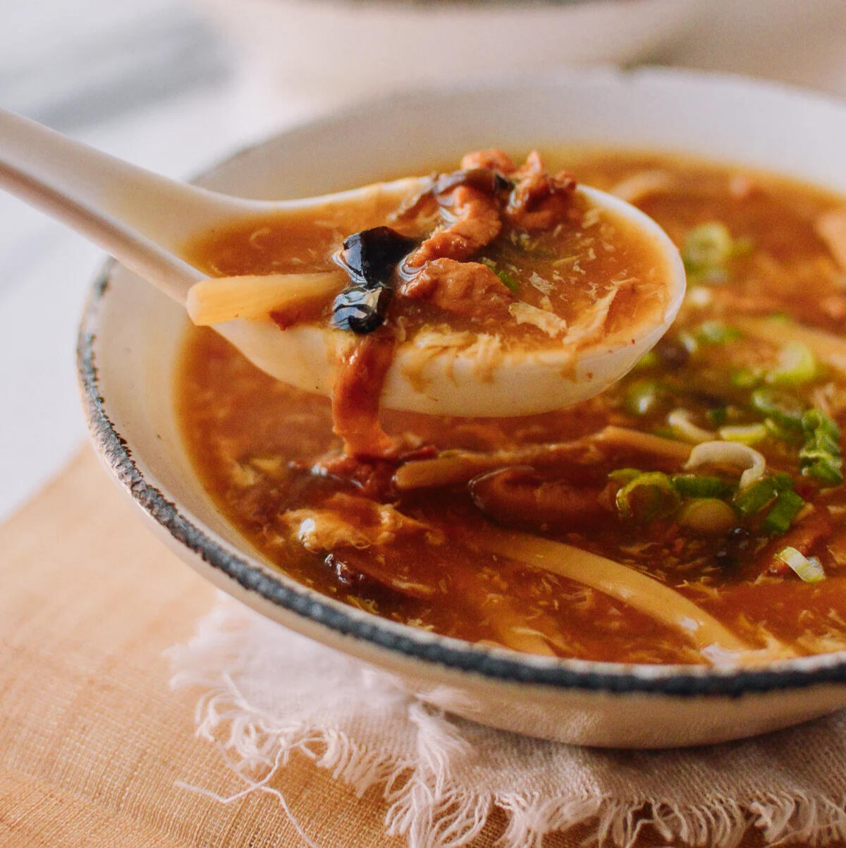 Electric and comforting all at once. This broth sings with bright vinegar tang and sharp white pepper heat, while tender pork, tofu, mushrooms, bamboo shoots, and wood-ear fungus swirl in silky egg ribbons. It’s richly umami, softly thickened, and perfectly jagged at the edges — both warming and energizing.