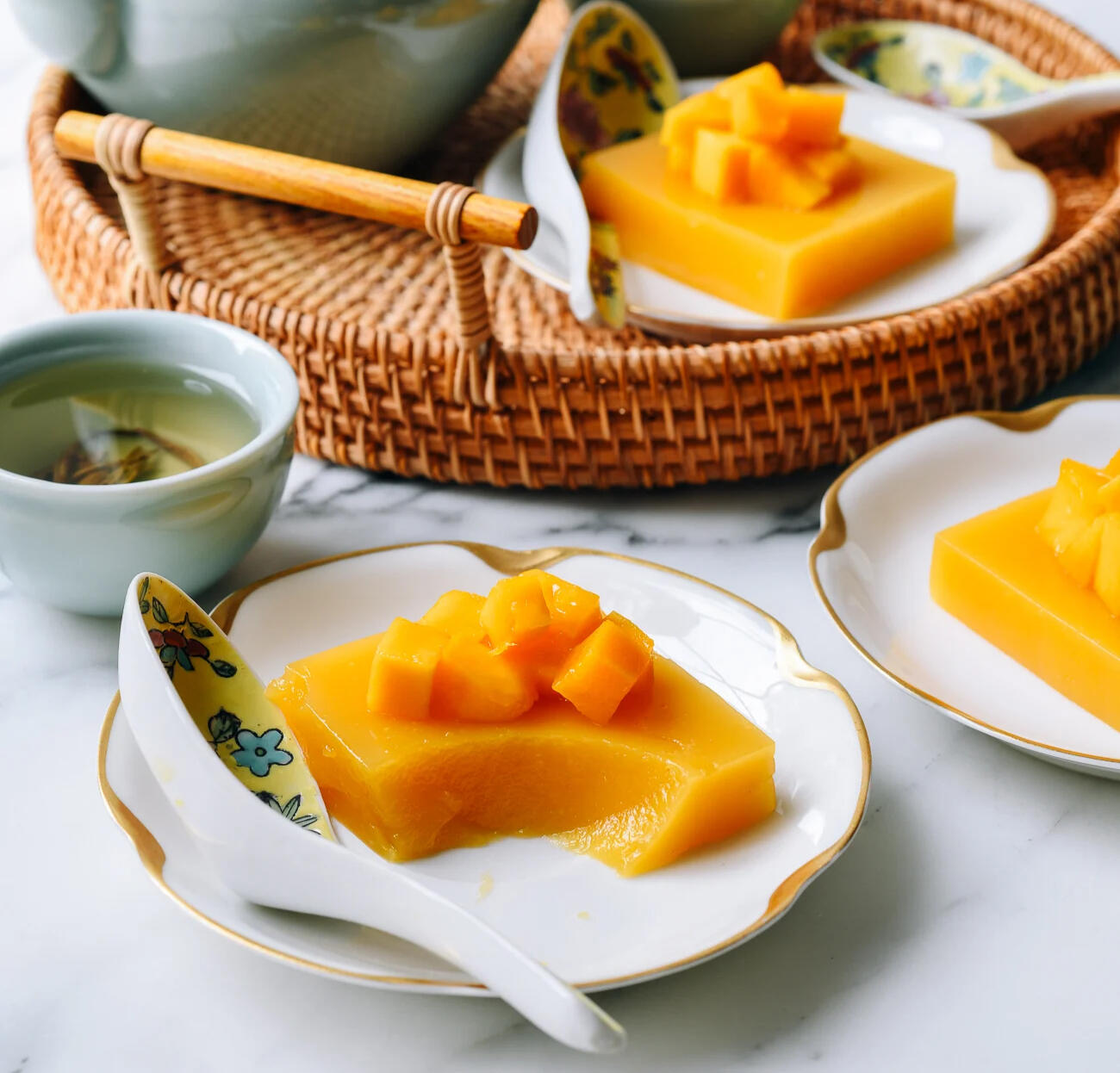A cool, luminous dessert that lets sweet, sun-ripened mango shine. With just five ingredients, it balances vibrant mango puree and a touch of creaminess from condensed milk, all set in a wobbly, silky gel that melts on your tongue. Refreshing, tropical, and gently sweet.