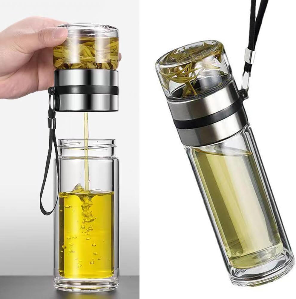 Do you wish you could have your tea and drink it on the go? Why not? With this Tea Infuser Water Bottle, you can enjoy your favorite tea blend while out and about. Fill the top chamber with your favorite loose-leaf tea blend and turn it upside down. It works with both hot and cold water. It creates a concentrate that you can release a little or a lot, letting you use your tea leaves fully!Teas: Green tea, Oolong, Pu Erh, Hojicha, Black tea, Ceylon, Darjeeling, Lemon Ginger, Rolanberry, Rose, Jasmine