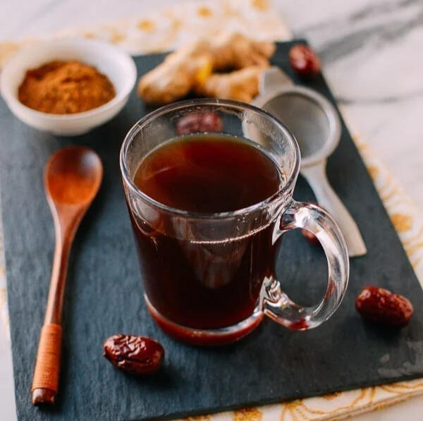 This tea is warming, soothing, and lightly sweet—this brew combines the sharp, spicy edge of freshly sliced ginger with the mellow, fruity depth of red dates (jujubes). The heat of the ginger tingles on your throat while the dates lend a gentle natural sweetness and soft, almost jammy undertone, creating a comforting cup that feels like a gentle hug from the inside out.