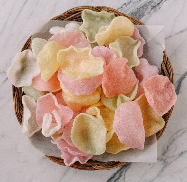 These colorful chips drop into hot oil, unfurling and puffing into golden, crunchy blossoms. One bite is a burst of airy crispness and briny sweetness — light but deeply satisfying. A festive snack that disappears too fast and always leaves you craving more.