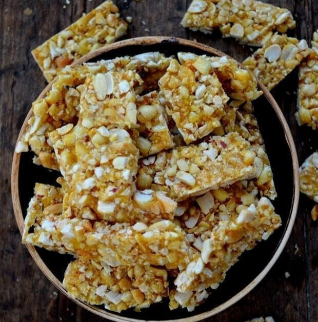 A crisp, glossy snap of toasted peanuts and fragrant sesame seeds bound together with golden caramelized sugar. Lightly sweet with a deep, nutty richness and a satisfying crunch, this classic treat balances roasted flavor and gentle sweetness in every bite—simple, addictive, and perfect for sharing or savoring on the go.